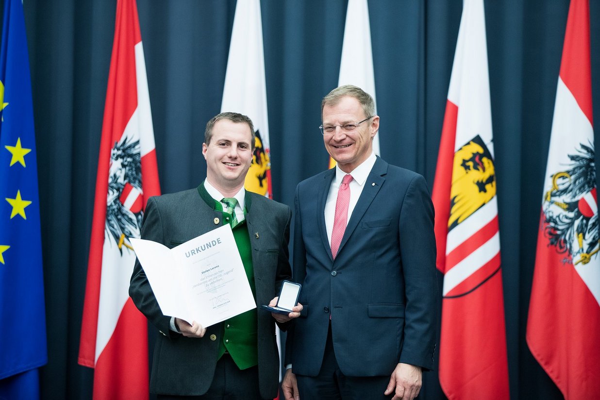 Alle zwei Jahre zeichnet das Land OÖ herausragende und verdienstvolle Menschen aus, die sich im Rahmen der außerschulischen Erziehung um die Jugend des Landes Oberösterreich besonders eingesetzt und außergewöhnliche Verdienste erbracht haben. In einer Feierstunde am 02. März fand die Verleihung des Ehrenzeichens um die „Verdienste um die OÖ. Jugend“ im Steinernen Saal im Landhaus statt. Seitens der Landjugend OÖ wurde dieses Ehrenzeichen an unsere ehemaligen Lj-Funktionäre David Greifeneder und Stefan Lorenz verliehen. Danke für eure vielen Stunden die ihr für die Landjugend im Einsatz wart.
