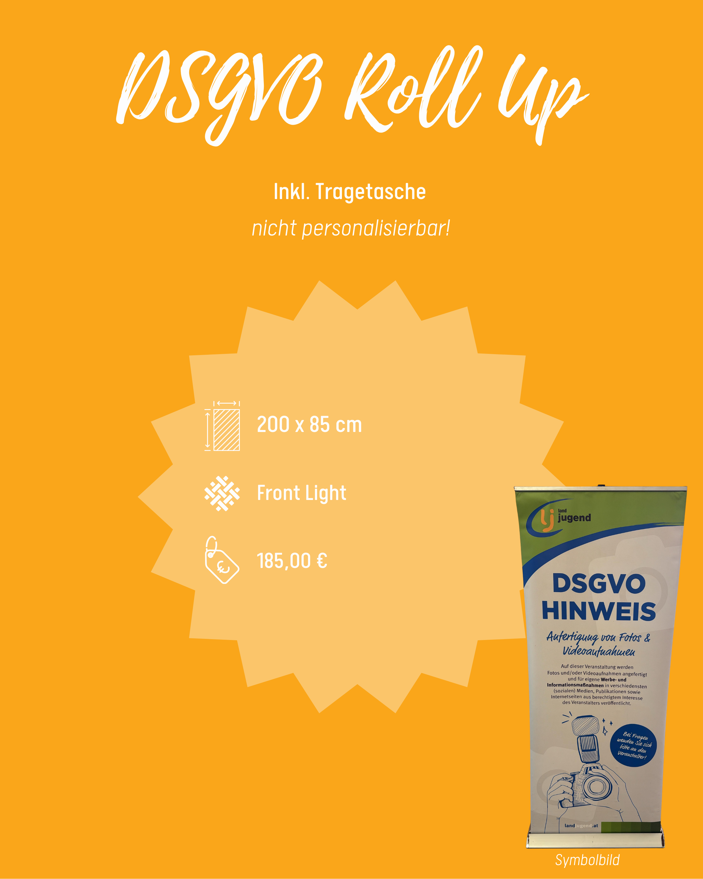 Sämtliche Artikel eignen sich optimal für eure Veranstaltungen und Feste als perfekter Fotohintergrund und Wiedererkennungsmerkmal!