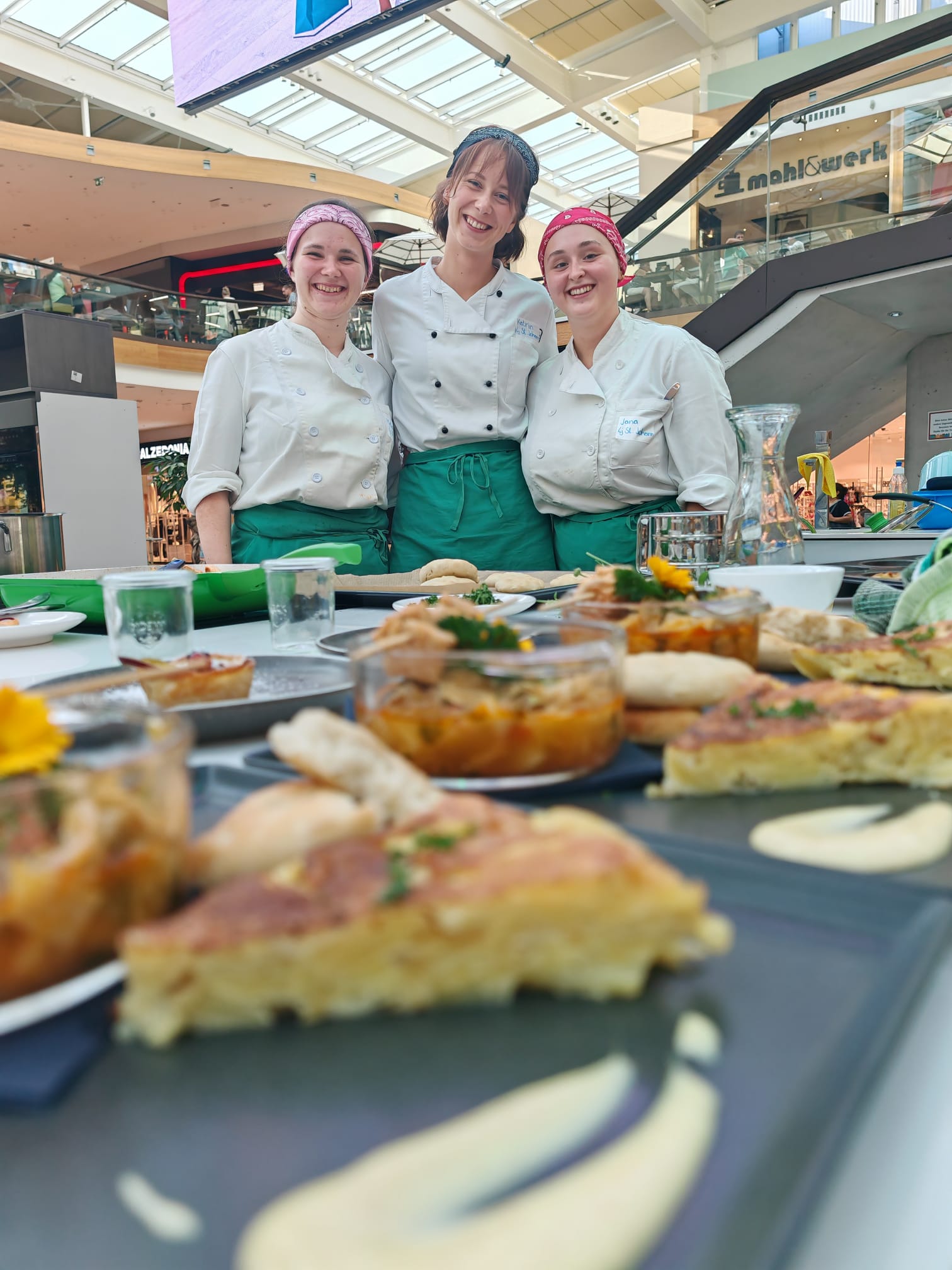 Eine Herausforderung kam beim Finalentscheid dazu: Die Teams mussten alles live und vor Publikum kochen. Mitten im Einkaufszentrum wurden zwei Schauküchen aufgebaut, damit das Geschehen von den zahlreichen Zuschauer:innen auf einer großen LED-Wand mitverfolgt werden konnte. Dabei stieg natürlich der Druck der Köchinnen.