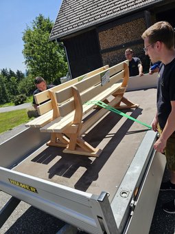 Die Organisation verlief in enger Absprache mit dem VIWO. Nachdem wir das Einverständnis hatten, übernahm unser Leiter Simon Selker, ein gelernter Zimmerer, die Planung und Anleitung. Gemeinsam mit unseren Mitgliedern der Landjugend wurden die Bänke gebaut. Schritt für Schritt entstand so aus dem Maibaumholz ein langlebiges Möbelstück mit Symbolcharakter. Als die Bänke fertiggestellt waren, vereinbarten wir einen Termin mit dem VIWO, um sie den Bewohnern offiziell zu übergeben.