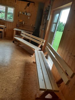 Unsere Projektidee entstand aus der Überlegung, wie wir das Holz unseres Maibaumes nach der Feier sinnvoll weiterverwenden könnten. Im vergangenen Jahr stellte sich wieder die Frage, ob wir den Baum spenden oder ob wir ihn selbst für Transparentsteher, usw. verwenden sollten. Dieses Mal wollten wir jedoch bewusst ein Projekt umsetzen, das so-wohl nachhaltig als auch für die Gemeinschaft vor Ort von praktischem Nutzen ist. So entstand der Gedanke, aus dem Maibaum stabile Sitzbänke zu bauen. Der konkrete Anlass war eine Anfrage beim VIWO in Taufkirchen, einer neuen Einrichtung für betreutes Wohnen. Da das Haus erst kürzlich eröffnet hatte, fragten wir nach, ob die Bewohner Bänke für ihren Außenbereich gut gebrauchen könnten. Das positive Feedback der Einrichtung bestärkte uns darin, die Idee in die Tat umzusetzen und damit unseren Beitrag zum gemeinschaftlichen Leben in Taufkirchen zu leisten.