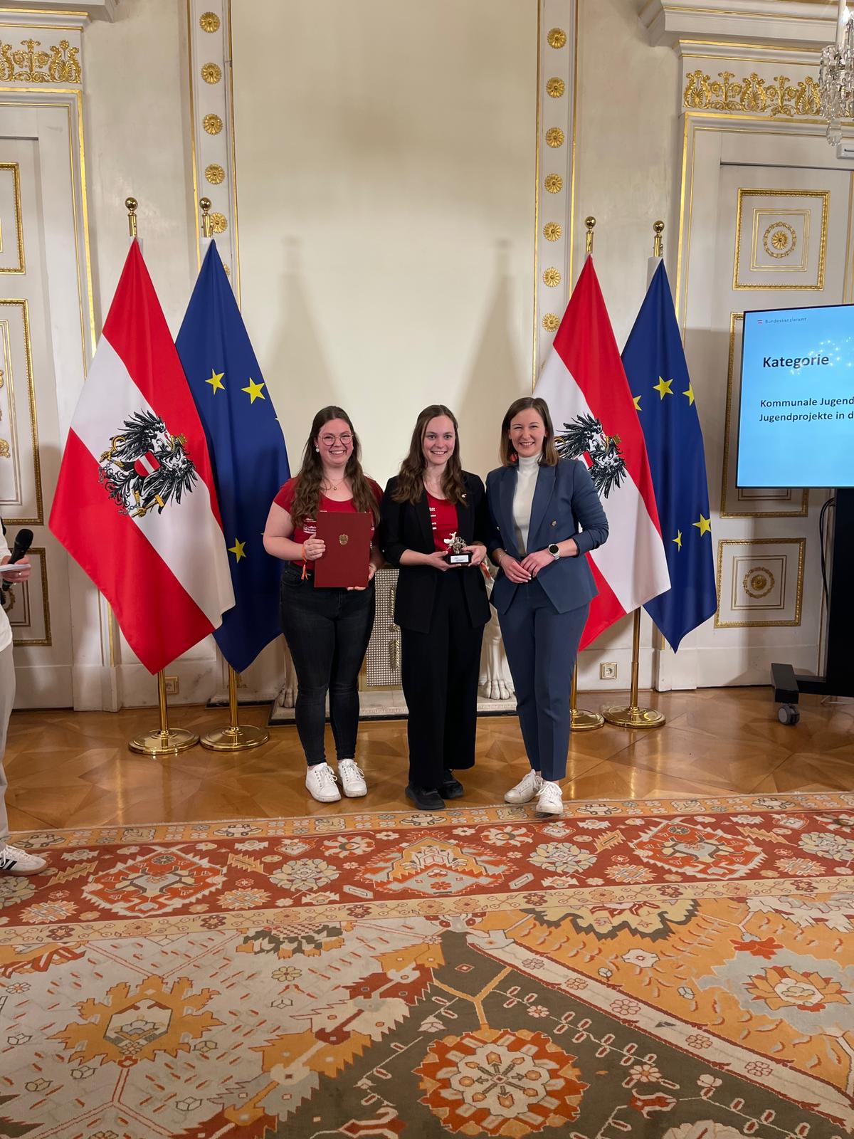 Bereits zum zehnten Mal wurde der Österreichische Jugendpreis am 23. März im Bundeskanzleramt in Wien verliehen. Prämiert werden Aktivitäten, die jungen Menschen neue Perspektiven eröffnen, Beteiligung ermöglichen und zu einem gelingenden Aufwachsen beitragen. Aus den Einreichungen wählt eine Fachjury die besten Projekte aus, die heuer am Montag, dem 23. März 2026 prämiert wurden. Überreicht wurde der Preis von Bundesministerin Claudia Bauer.