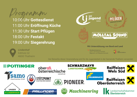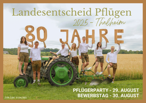 Die Landjugend Thalheim als austragende Ortsgruppe lädt gemeinsam mit der Landjugend Oberösterreich zum LE Pflügen 2025 ein. Neben einem spannendem Wettbewerb wird auch für alle anderen Gäste ein buntes Programm geboten! Neben einer Maschinenausstellung, einem gemütlichen Frühschoppen und einem tollen Kinderprogramm feiert die Landjugend Thalheim ihr Jubiläum!